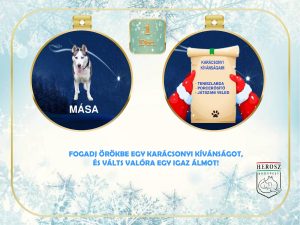 Mása egy husky matróna, 3 éve gazdikeresőnk. Visszahozott kutyus, csodásan szép, emberközpontú, de elsőre mégsem ugrik senki nyakába, ez viszont ne tántorítsa el az iránta érdeklődőket. Más kutyákkal jól kijön, jelenleg Buksi bácsit boldogítja